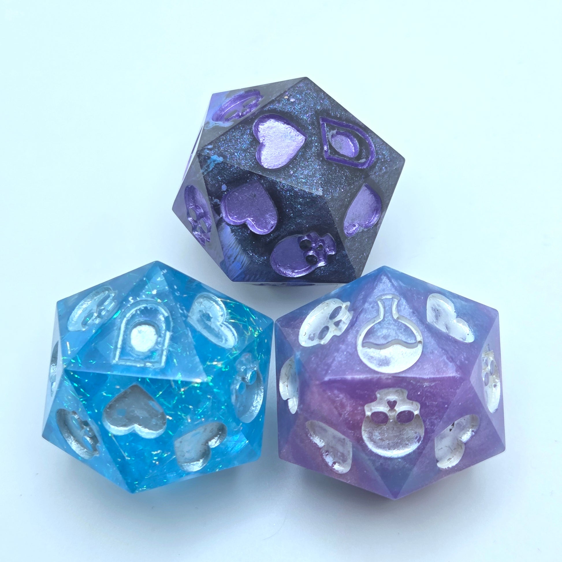 Please Note: Colours in person may differ from those shown on a computer screen. All dice from Raven & Quill are handcrafted and may include small blemishes or imperfections from the casting and finishing process. Any significant ones will be mentioned/photographed in the listing.