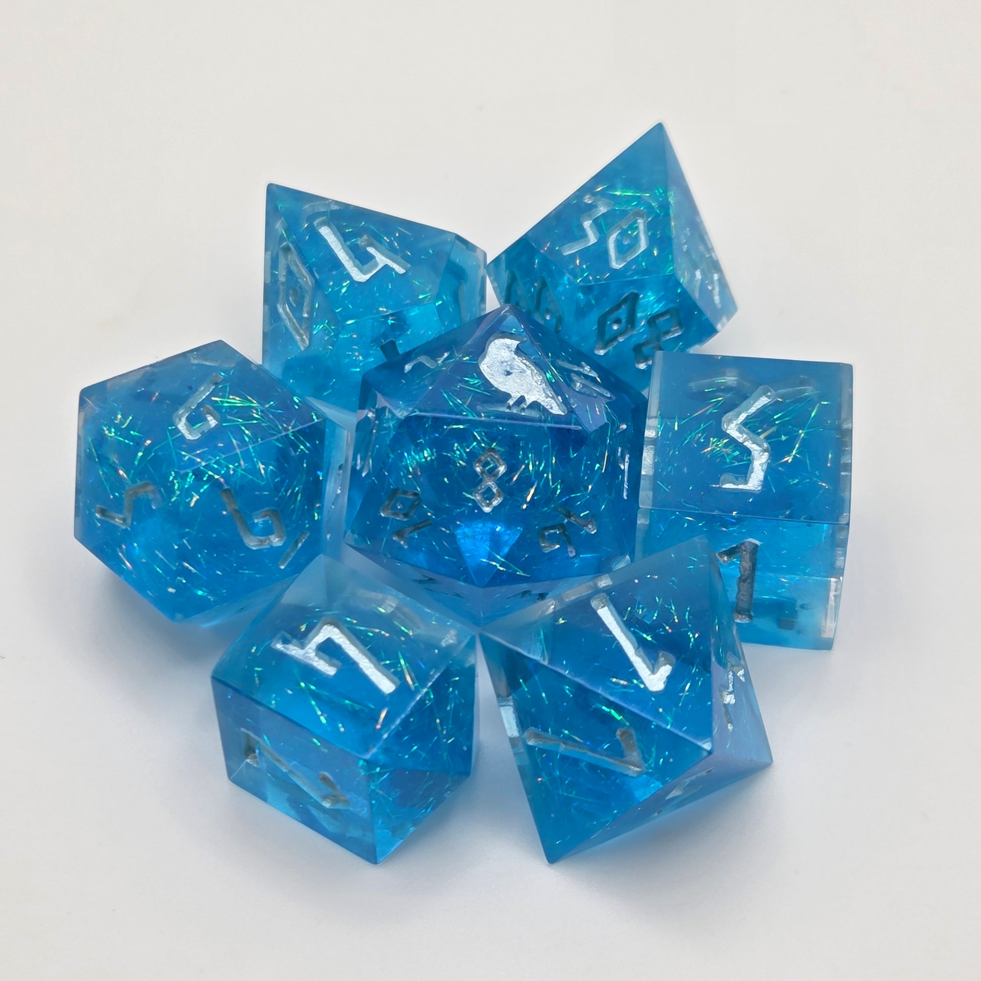 Please Note: Colours in person may differ from those shown on a computer screen. All dice from Raven & Quill are handcrafted and may include small blemishes or imperfections from the casting and finishing process. Any significant ones will be mentioned/photographed in the listing.